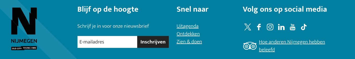 Nijmegen kent vele mooie bezienswaardigheden, die je het verhaal van de oudste stad van Nederland vertellen. Om alle trotse inwoners kennis te laten maken met onze cultuur, geschiedenis en bezienswaardigheden is er de Ambassadeurspas! Download de pas in je Yivi wallet en krijg, samen met je gasten, korting. Of zelfs gratis toegang bij veel bezienswaardigheden of andere leuke dingen in Nijmegen